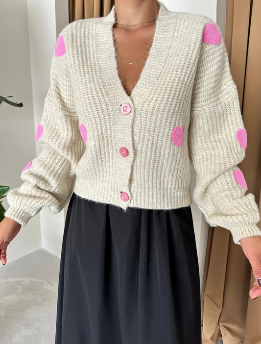 AusverkauftCardigan „Cutie“ Beige/Pink