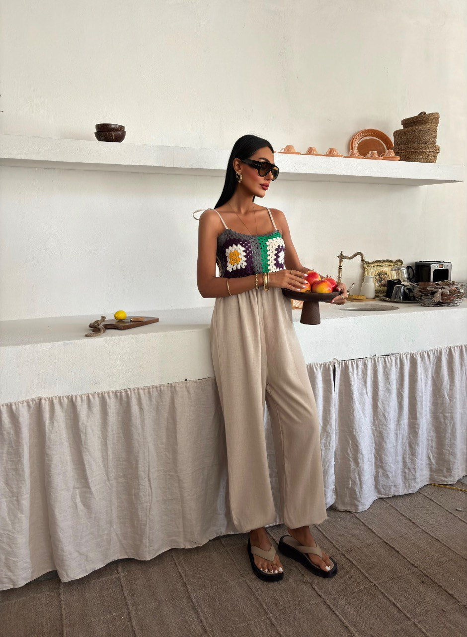 Dieser Jumpsuit fängt die Essenz von Luxus in einem einzigen Piece ein. Die Silhouette ist sowohl schmeichelnd als auch selbstbewusst, während dezente Highlights und edle Texturen ein Gefühl von moderner Opulenz schaffen. Für Momente, die unvergesslich bleiben sollen.