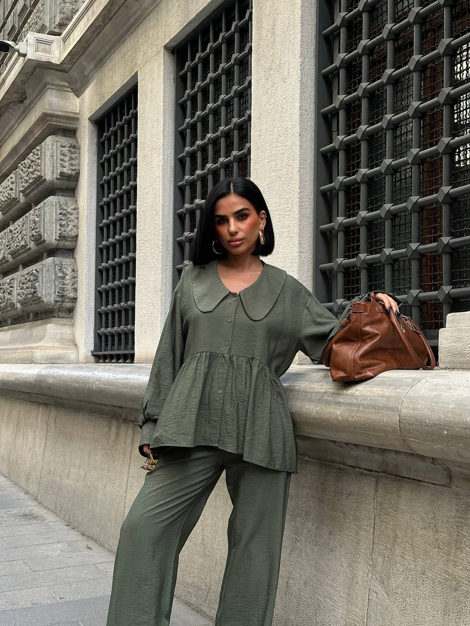 Dieser Zweiteiler bringt mühelos Eleganz in den Alltag: Edle Farben, eine fließende Silhouette und raffinierte Details sorgen für einen Look, der modern, feminin und zugleich unglaublich bequem ist.