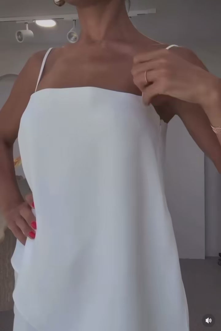 Reduziert und doch auffallend: Dieses Design vereint klare Linien mit opulenter Stoffwahl und außergewöhnlicher Haptik. Ob tagsüber oder abends – dieser Zweiteiler wirkt wie ein Couture-Statement, das unaufdringlich Aufmerksamkeit zieht.