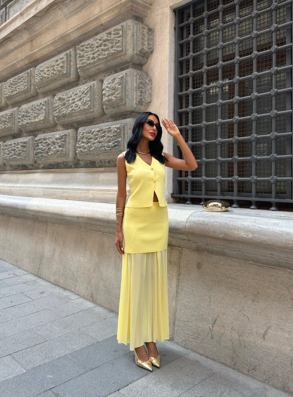 Dazu der Wow-Moment: Der Minirock wird durch einen fließenden Maxirock aus Tüll verlängert – verspielt, raffiniert und absolut einzigartig. So entsteht ein Look zwischen urbanem Chic und romantischem Sommertraum.