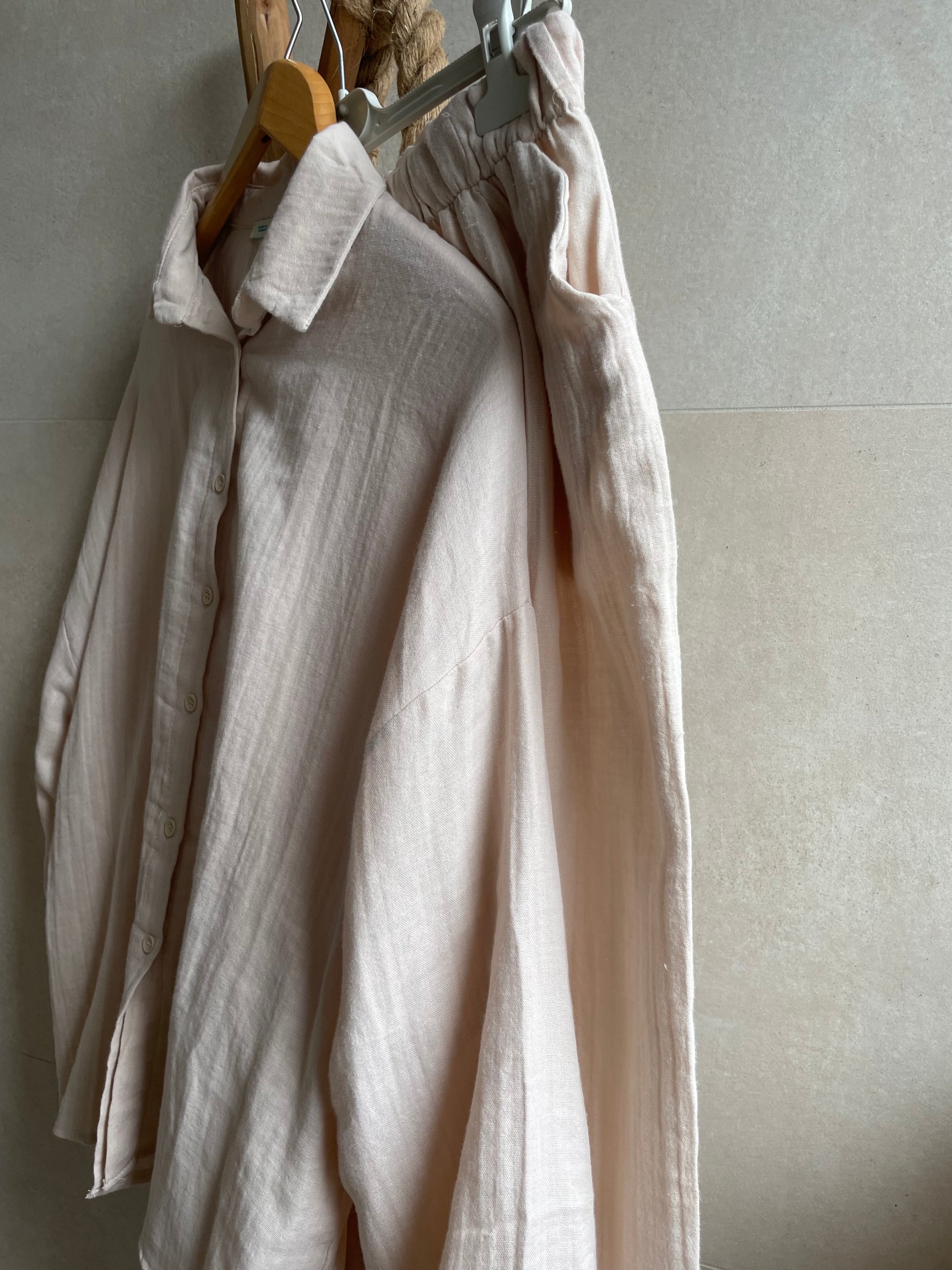 Stell dir vor: ein warmer Sommertag, der Wind streicht sanft über deine Haut und du fühlst dich einfach nur frei. Genau dieses Gefühl schenkt dir unser Oversizes Zweiteiler, das dich stilvoll und mühelos durch den Tag begleitet – ob beim Spaziergang, auf einer Sommerhochzeit, im Urlaub, im Büro oder am Strand bei Sonnenuntergang.