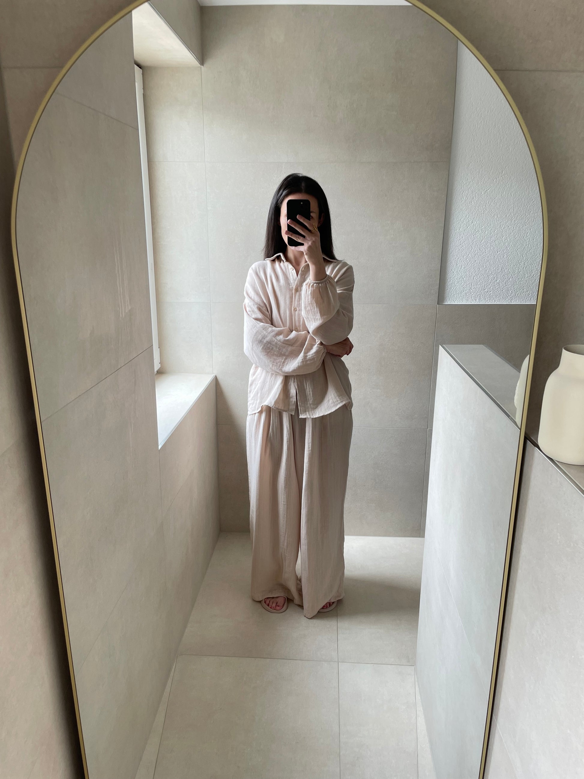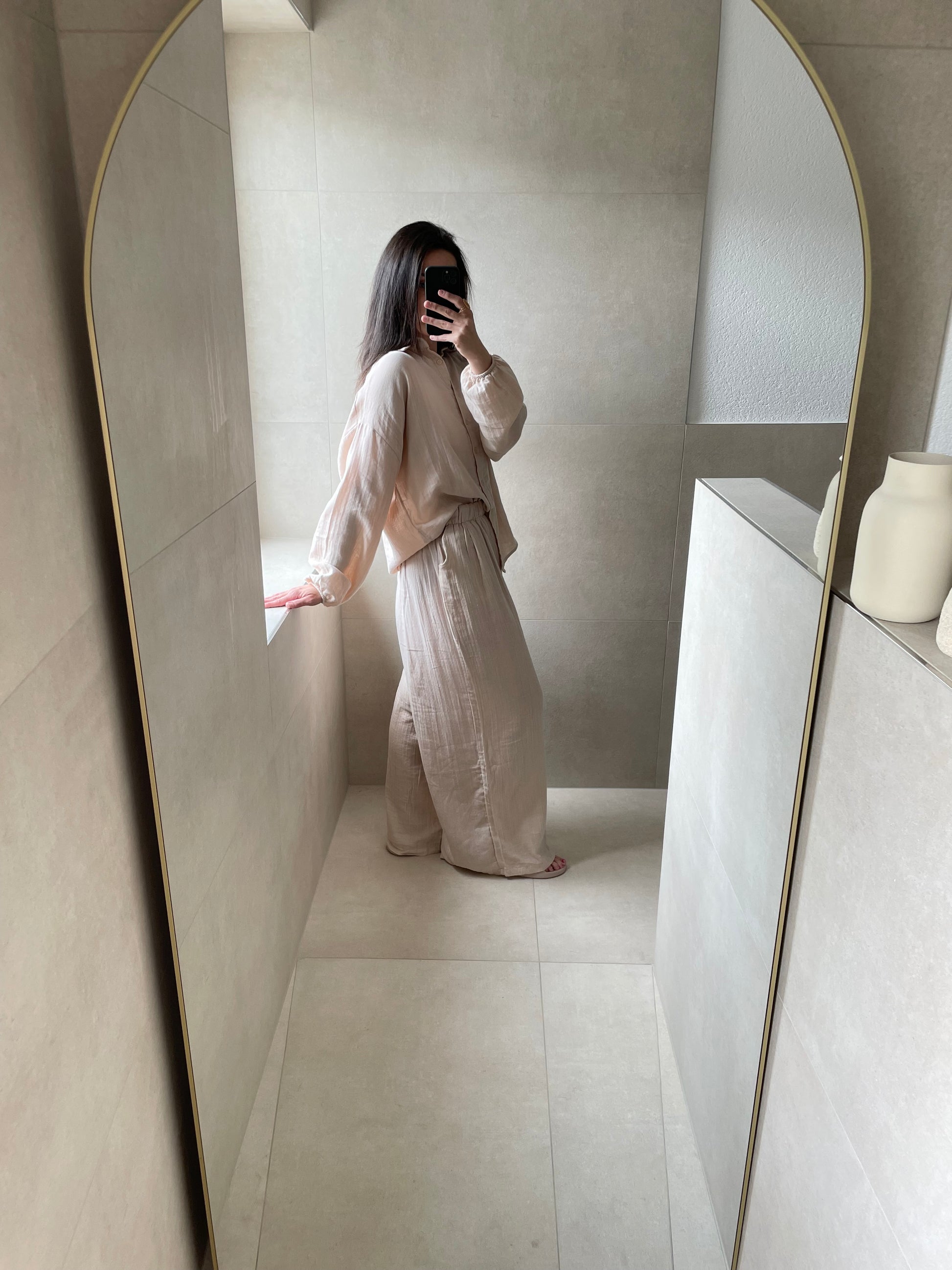 Der luftige, lockere Schnitt umspielt jede Figur und sorgt für ein angenehmes Tragegefühl – ganz ohne einzuengen. Einfach anziehen und losgehen – dieser minimalistische Zweiteiler braucht nicht viel, um dich strahlen zu lassen.