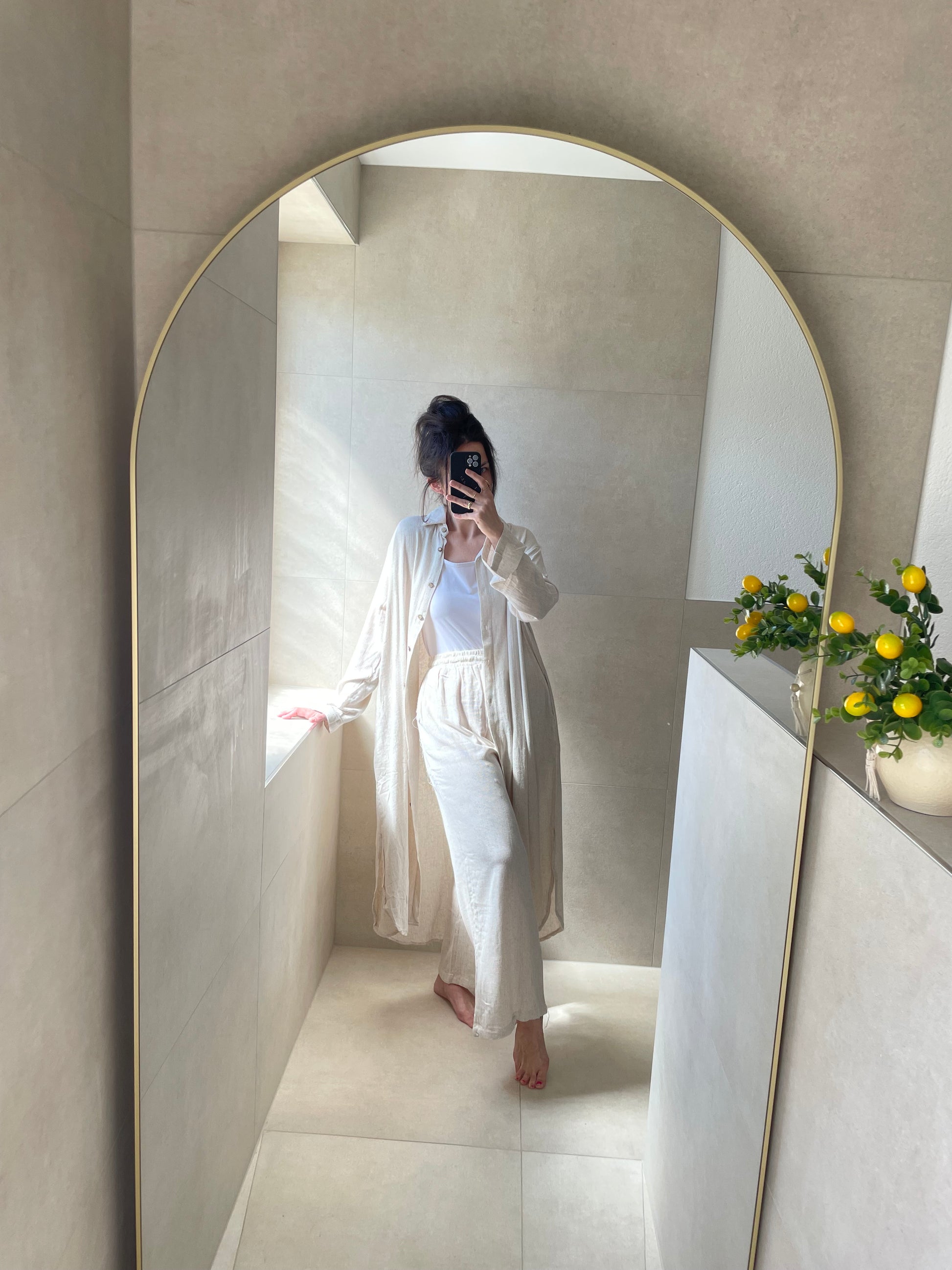 Der luftige, lockere Schnitt umspielt jede Figur und sorgt für ein angenehmes Tragegefühl – ganz ohne einzuengen. Einfach anziehen und losgehen – dieser Zweiteiler braucht nicht viel, um dich strahlen zu lassen.
